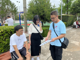 本次活动首先进行的是理论宣传,队员们向当地群众积极宣传习近平生态文明思想让大家深入了解碳达峰、碳中和等相关知识倡导大家参与垃圾分类,实施“三减一节”行动,保护绿色家园用绿色引领发展,构建绿色、低碳、环保、节能的美丽中国。