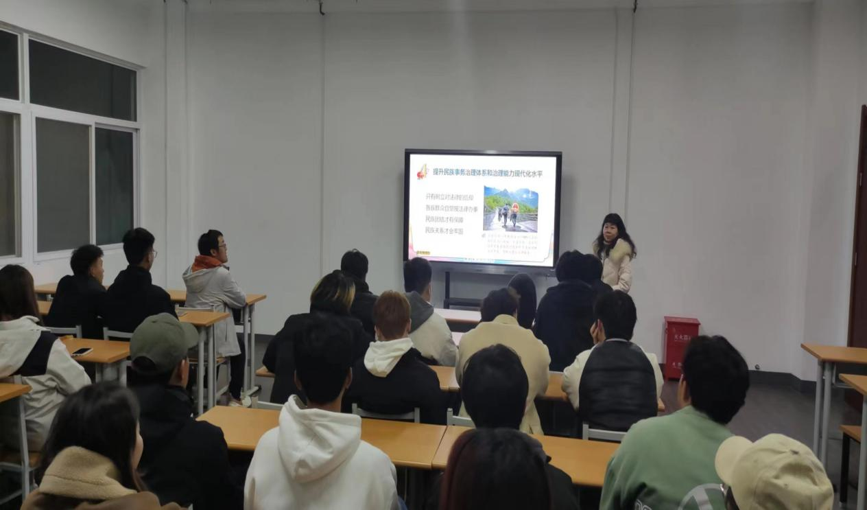 班会上,各班辅导员老师给同学们讲述了中华民族多元一体的基本国情,引导员工进一步了解中华文化,并且结合视频等形式,给同学们讲解了我国民族团结进步事业的伟大成就,并向同学们强调要不断增强“五个认同”,做努力推动新时代党的民族工作高质量发展的践行者。