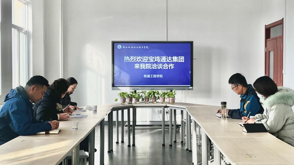 贾经理对宝鸡通达工程集团一行的到来表示欢迎,详细介绍了学院目前的发展势态、专业设置等基本情况,重点介绍了学校在校企合作方面的政策、运行机制及合作领域,也感谢宝鸡通达工程集团前期对学校工作的支持,希望今后校企合作能进一步加强,开展更广泛更深层次的合作与交流。