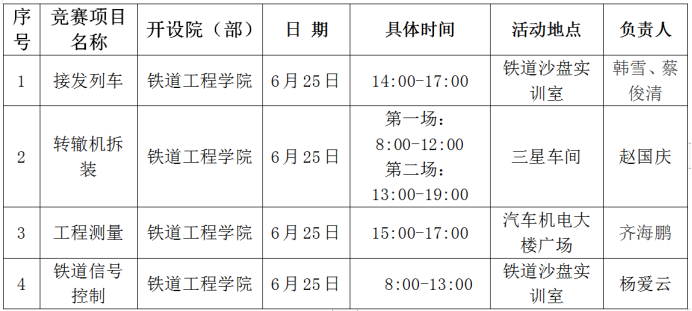 本届员工技能大赛best365官方网站登录入口申报开设BIM建模、铁道信号控制、转辙机拆装、工程测量、建筑工程识图、建筑装饰技术应用、接发列车7个赛项,共计参赛人次157人,实际开展竞赛项目如下: